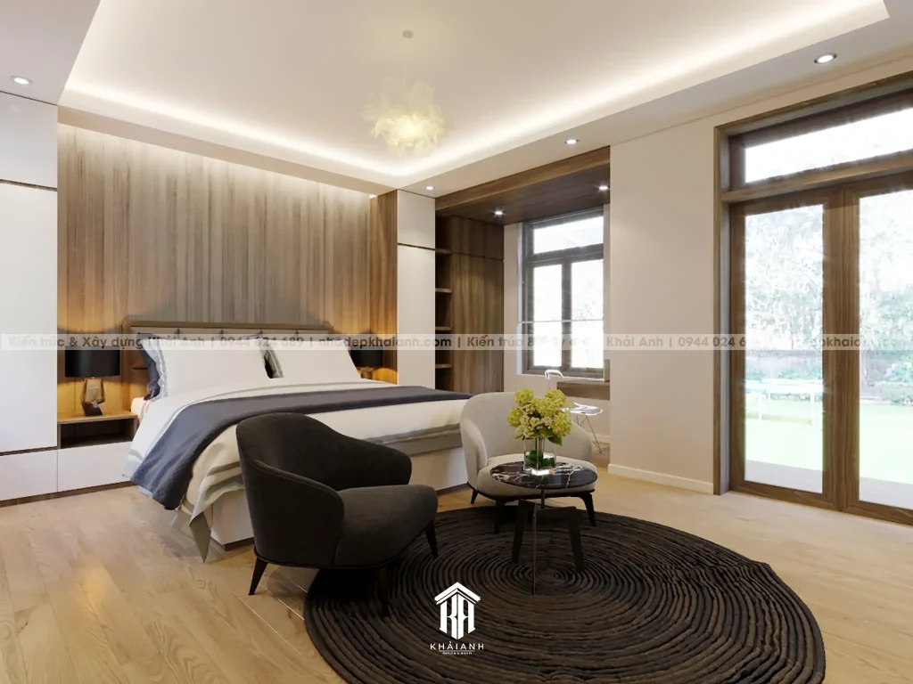 Thông tin dự án – Loại hình: Phòng ngủ – Chủ đầu tư: Ms. Phượng – Diện tích: – Phong cách: Hiện đại – Vị trí: Thanh Hóa – Thiết kế & Thi công: Kiến trúc & Xây dựng Khải Anh Phong cách nội thất Nội thất phòng ngủ thiết kế hiện đại, sử dụng