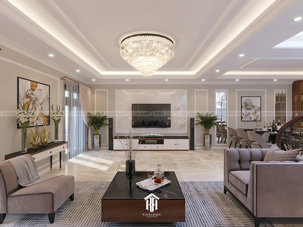 Thông tin dự án – Loại hình: Nội thất – Chủ đầu tư: Ms. Thúy – Diện tích: – Phong cách: Tân cổ điển – Vị trí: Thanh Hóa – Thiết kế & Thi công: Kiến trúc & Xây dựng Khải Anh Phong cách nội thất Căn hộ thiết kế Tân Cổ Điển với tông