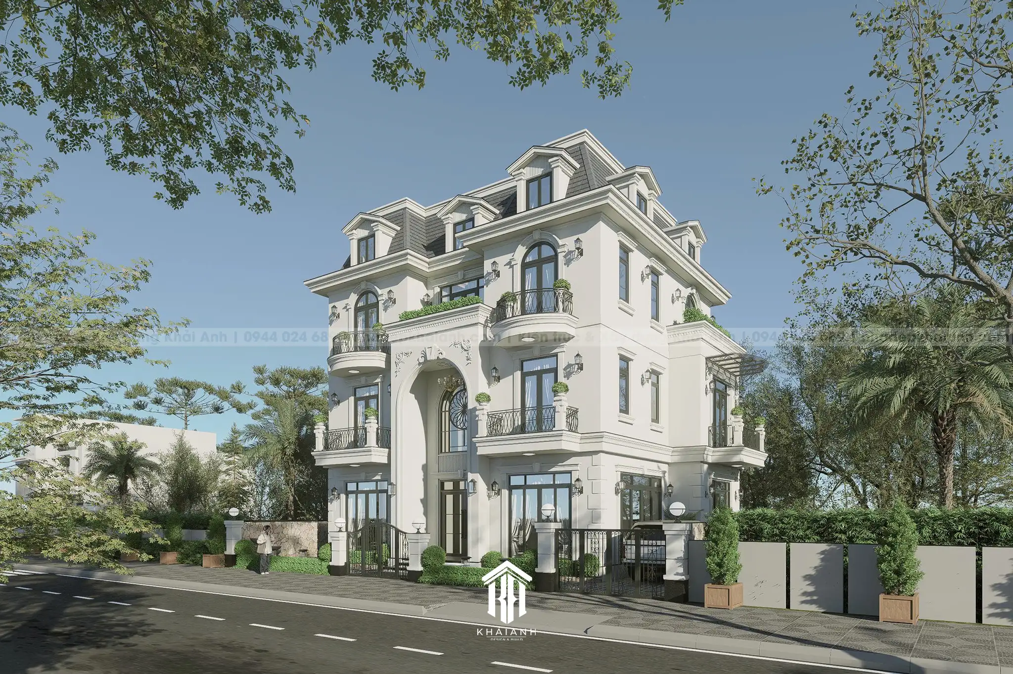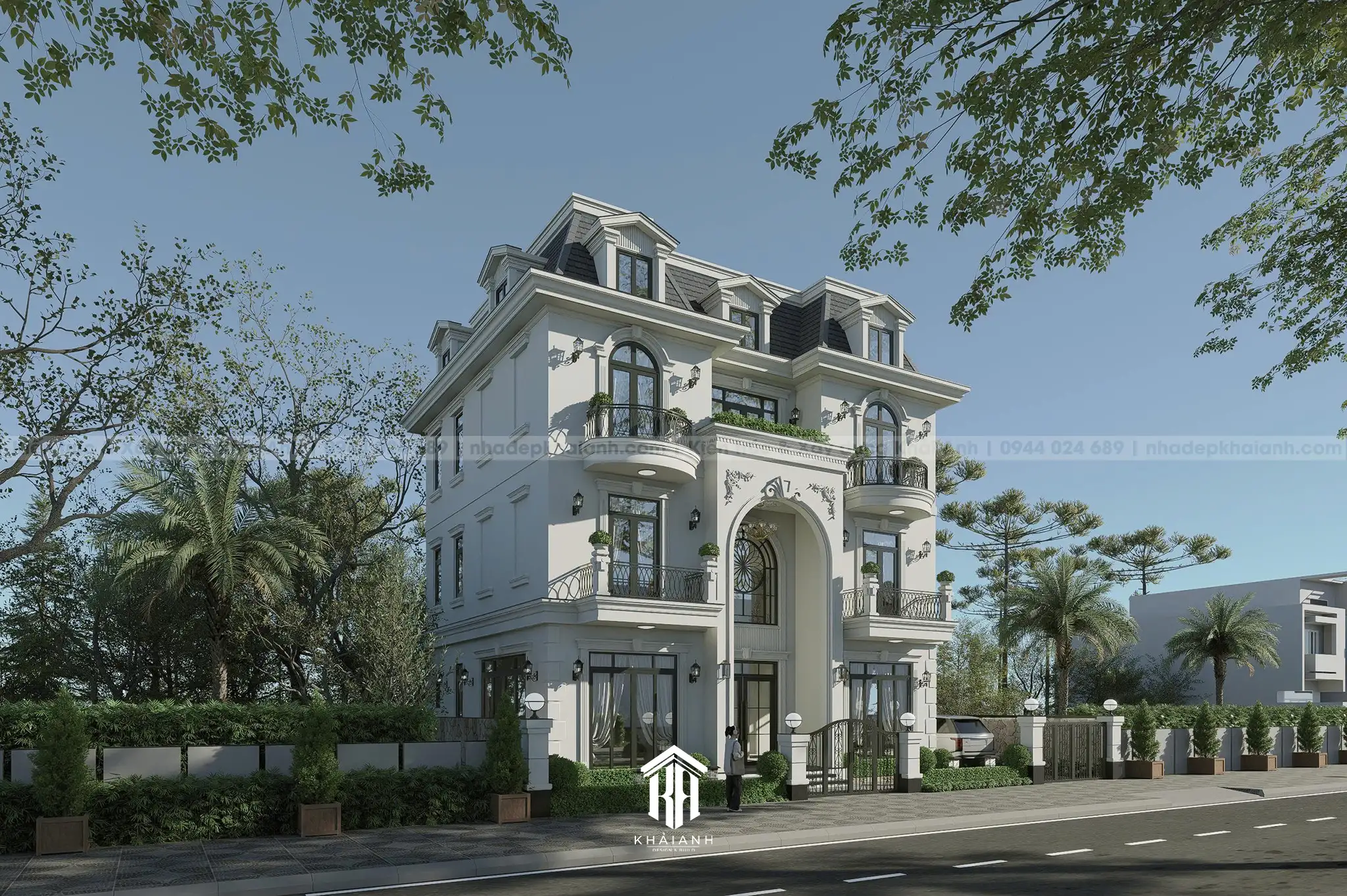 - Phong cách Tân cổ điển sang trọng với bố cục đối xứng hoàn hảo. Điểm nhấn là hệ mái Mansard uy nghi kết hợp cùng các vòm cửa mềm mại và lan can sắt uốn nghệ thuật.